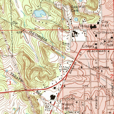 A 1973 historical topographic map of Union Springs in Alabama produced by the United States Geological Survey (USGS). It shows contour lines, place names, water bodies and roads. Map services and data available from U.S. Geological Survey, National Geospatial Program. Map was obtained from https:...