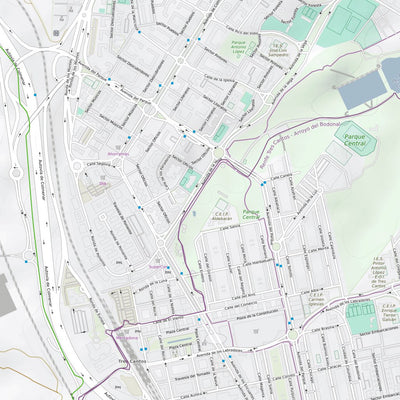 Map of the Valdelatas mountain bike trails. Including some POI such as parking locations.