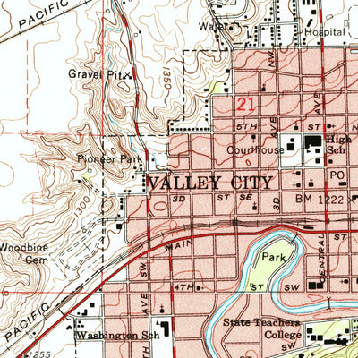 A 1961 historical topographic map of Valley City West in North Dakota produced by the United States Geological Survey (USGS). It shows contour lines, place names, water bodies and roads. Map services and data available from U.S. Geological Survey, National Geospatial Program. Map was obtained fro...