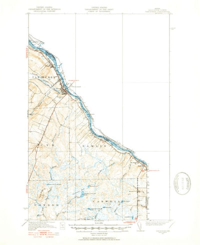 A 1951 historical topographic map of Van Buren in Maine produced by the United States Geological Survey (USGS). It shows contour lines, place names, water bodies and roads. Map services and data available from U.S. Geological Survey, National Geospatial Program. Map was obtained from https://www....