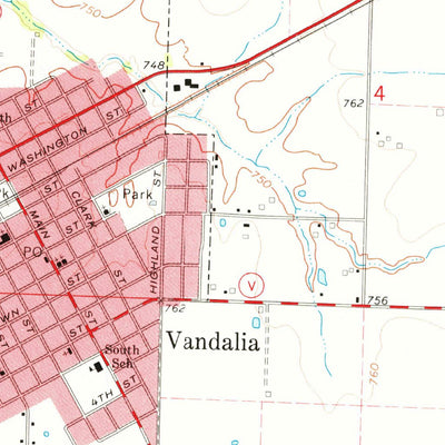 A 1973 historical topographic map of Vandalia in Missouri produced by the United States Geological Survey (USGS). It shows contour lines, place names, water bodies and roads. Map services and data available from U.S. Geological Survey, National Geospatial Program. Map was obtained from https://ww...