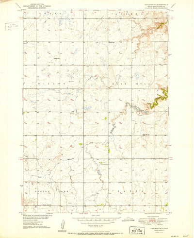 A 1951 historical topographic map of Vayland SE in South Dakota produced by the United States Geological Survey (USGS). It shows contour lines, place names, water bodies and roads. Map services and data available from U.S. Geological Survey, National Geospatial Program. Map was obtained from http...