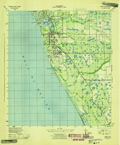 A 1944 historical topographic map of Venice in Florida produced by the United States Geological Survey (USGS). It shows contour lines, place names, water bodies and roads. Map services and data available from U.S. Geological Survey, National Geospatial Program. Map was obtained from https://www.s...