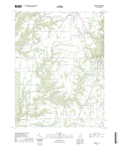 A digital topographic map of Versailles in Indiana produced by the United States Geological Survey (USGS) in 2022. The map is part of the National Map series of 7.5 minute quadrangle maps. It shows contour lines, place names, water bodies and roads. Map services and data available from U.S. Geolo...