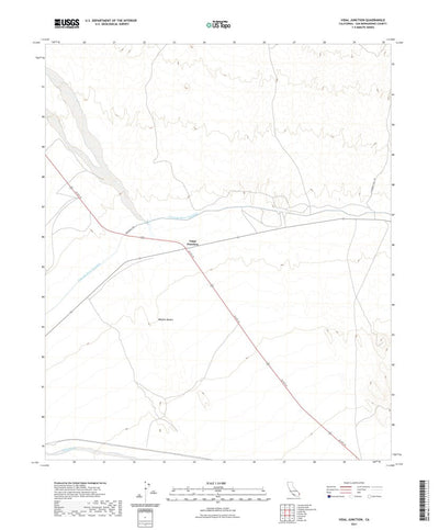 A digital topographic map of Vidal Junction in California produced by the United States Geological Survey (USGS) in 2021. The map is part of the National Map series of 7.5 minute quadrangle maps. It shows contour lines, place names, water bodies and roads. Map services and data available from U.S...