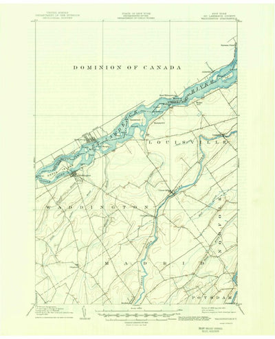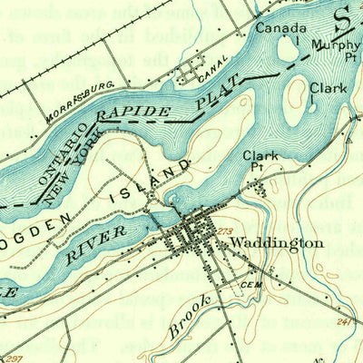 A 1905 historical topographic map of Waddington in New York produced by the United States Geological Survey (USGS). It shows contour lines, place names, water bodies and roads. Map services and data available from U.S. Geological Survey, National Geospatial Program. Map was obtained from https://...