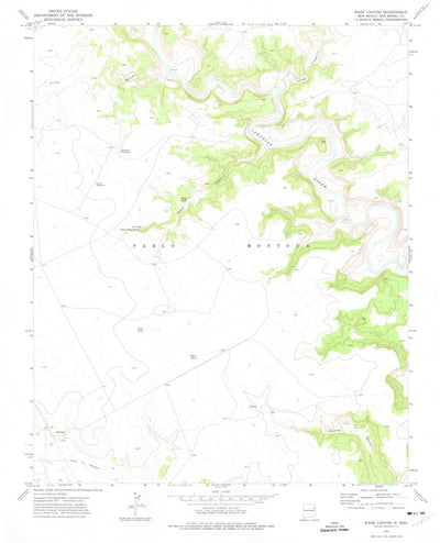 A 1972 historical topographic map of Wade Canyon in New Mexico produced by the United States Geological Survey (USGS). It shows contour lines, place names, water bodies and roads. Map services and data available from U.S. Geological Survey, National Geospatial Program. Map was obtained from https...