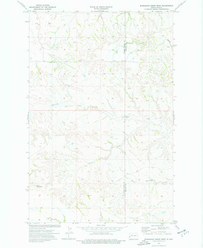 A 1974 historical topographic map of Wannagan Creek West in North Dakota produced by the United States Geological Survey (USGS). It shows contour lines, place names, water bodies and roads. Map services and data available from U.S. Geological Survey, National Geospatial Program. Map was obtained ...