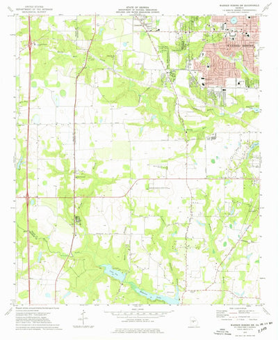 A 1973 historical topographic map of Warner Robins SW in Georgia produced by the United States Geological Survey (USGS). It shows contour lines, place names, water bodies and roads. Map services and data available from U.S. Geological Survey, National Geospatial Program. Map was obtained from htt...