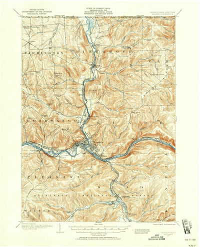 A 1906 historical topographic map of Warren in Pennsylvania produced by the United States Geological Survey (USGS). It shows contour lines, place names, water bodies and roads. Map services and data available from U.S. Geological Survey, National Geospatial Program. Map was obtained from https://...