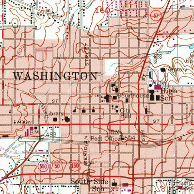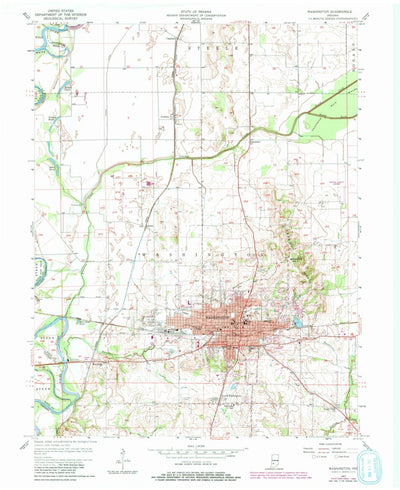 A 1957 historical topographic map of Washington in Indiana produced by the United States Geological Survey (USGS). It shows contour lines, place names, water bodies and roads. Map services and data available from U.S. Geological Survey, National Geospatial Program. Map was obtained from https://w...