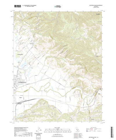 A digital topographic map of Watsonville East in California produced by the United States Geological Survey (USGS) in 2021. The map is part of the National Map series of 7.5 minute quadrangle maps. It shows contour lines, place names, water bodies and roads. Map services and data available from U...