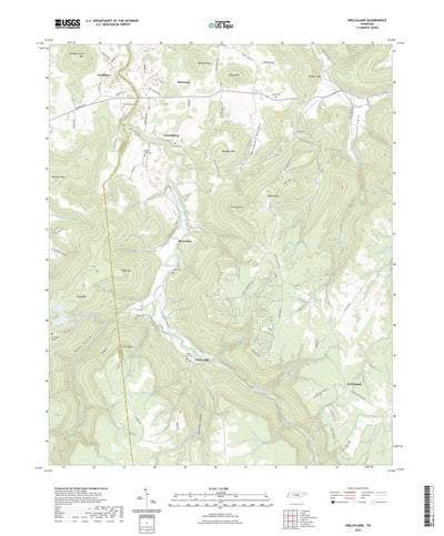 A digital topographic map of Welchland in Tennessee produced by the United States Geological Survey (USGS) in 2022. The map is part of the National Map series of 7.5 minute quadrangle maps. It shows contour lines, place names, water bodies and roads. Map services and data available from U.S. Geol...