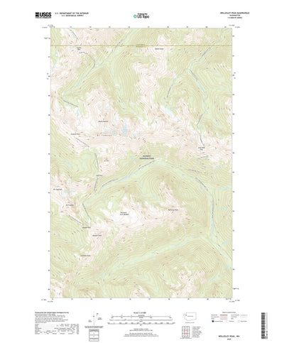 A digital topographic map of Wellesley Peak in Washington produced by the United States Geological Survey (USGS) in 2020. The map is part of the National Map series of 7.5 minute quadrangle maps. It shows contour lines, place names, water bodies and roads. Map services and data available from U.S...