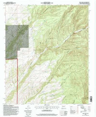 A 1995 historical topographic map of Welty Hill in New Mexico produced by the United States Geological Survey (USGS). It shows contour lines, place names, water bodies and roads. Map services and data available from U.S. Geological Survey, National Geospatial Program. Map was obtained from https:...
