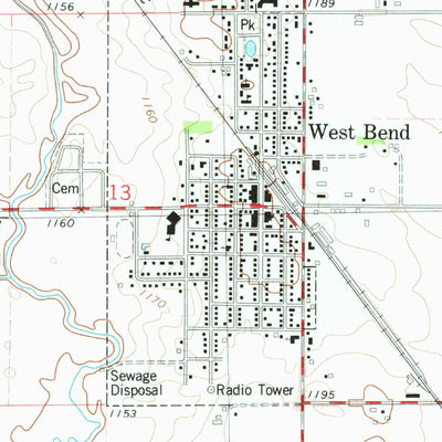 A 1980 historical topographic map of West Bend in Iowa produced by the United States Geological Survey (USGS). It shows contour lines, place names, water bodies and roads. Map services and data available from U.S. Geological Survey, National Geospatial Program. Map was obtained from https://www.s...