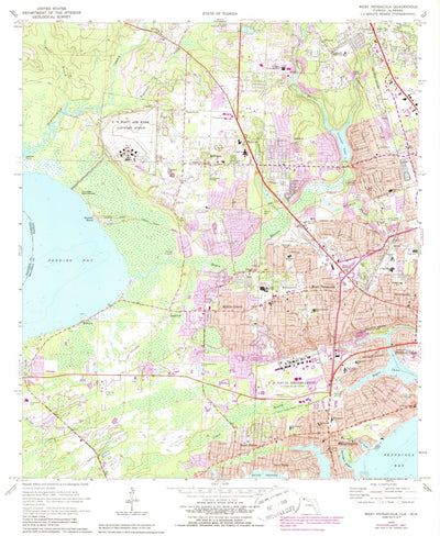 A 1970 historical topographic map of West Pensacola in Florida produced by the United States Geological Survey (USGS). It shows contour lines, place names, water bodies and roads. Map services and data available from U.S. Geological Survey, National Geospatial Program. Map was obtained from https...