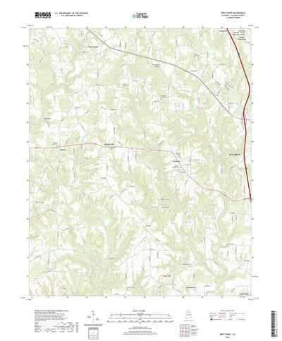 A digital topographic map of West Point in Alabama produced by the United States Geological Survey (USGS) in 2020. The map is part of the National Map series of 7.5 minute quadrangle maps. It shows contour lines, place names, water bodies and roads. Map services and data available from U.S. Geolo...