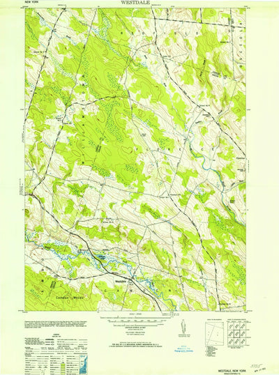 A 1946 historical topographic map of Westdale in New York produced by the United States Geological Survey (USGS). It shows contour lines, place names, water bodies and roads. Map services and data available from U.S. Geological Survey, National Geospatial Program. Map was obtained from https://ww...