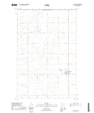 A digital topographic map of Westhope in North Dakota produced by the United States Geological Survey (USGS) in 2020. The map is part of the National Map series of 7.5 minute quadrangle maps. It shows contour lines, place names, water bodies and roads. Map services and data available from U.S. Ge...