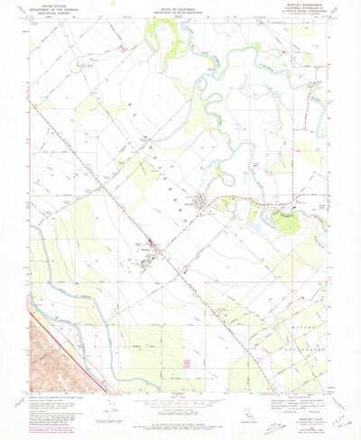 A 1969 historical topographic map of Westley in California produced by the United States Geological Survey (USGS). It shows contour lines, place names, water bodies and roads. Map services and data available from U.S. Geological Survey, National Geospatial Program. Map was obtained from https://w...