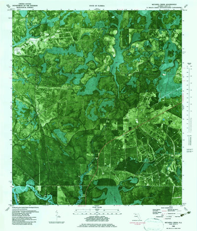 A 1982 historical topographic map of Wetappo Creek in Florida produced by the United States Geological Survey (USGS). It shows contour lines, place names, water bodies and roads. Map services and data available from U.S. Geological Survey, National Geospatial Program. Map was obtained from https:...