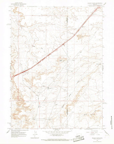 A 1964 historical topographic map of Wildcat Butte in Wyoming produced by the United States Geological Survey (USGS). It shows contour lines, place names, water bodies and roads. Map services and data available from U.S. Geological Survey, National Geospatial Program. Map was obtained from https:...