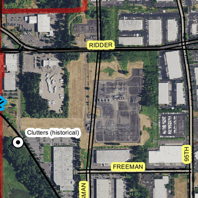 New 2018 Aerial Photo Imagery of Wilsonville-North, Oregon at scale 18000 including labels for road systems, township, range & survey layer, and both current and historical points of interest on a 11x17 Sheet.