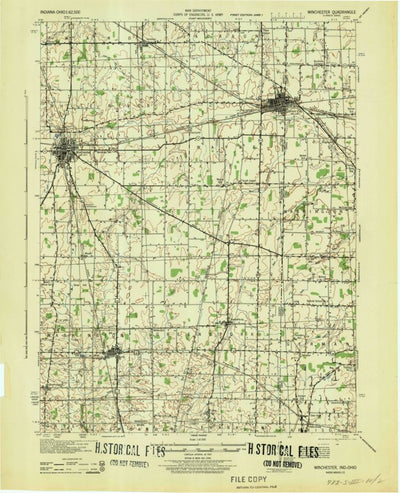 A 1943 historical topographic map of Winchester in Indiana produced by the United States Geological Survey (USGS). It shows contour lines, place names, water bodies and roads. Map services and data available from U.S. Geological Survey, National Geospatial Program. Map was obtained from https://w...