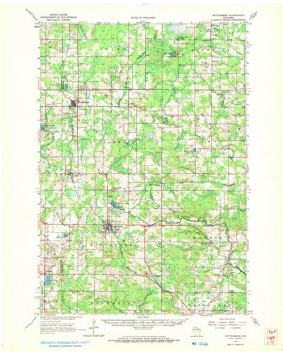 A 1964 historical topographic map of Wittenberg in Wisconsin produced by the United States Geological Survey (USGS). It shows contour lines, place names, water bodies and roads. Map services and data available from U.S. Geological Survey, National Geospatial Program. Map was obtained from https:/...