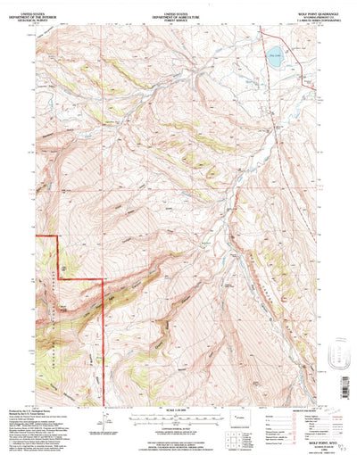 A 1991 historical topographic map of Wolf Point in Wyoming produced by the United States Geological Survey (USGS). It shows contour lines, place names, water bodies and roads. Map services and data available from U.S. Geological Survey, National Geospatial Program. Map was obtained from https://w...