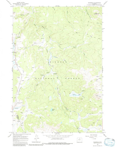 A 1964 historical topographic map of Woodrock in Wyoming produced by the United States Geological Survey (USGS). It shows contour lines, place names, water bodies and roads. Map services and data available from U.S. Geological Survey, National Geospatial Program. Map was obtained from https://www...