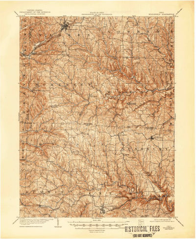 A 1905 historical topographic map of Woodsfield in Ohio produced by the United States Geological Survey (USGS). It shows contour lines, place names, water bodies and roads. Map services and data available from U.S. Geological Survey, National Geospatial Program. Map was obtained from https://www....