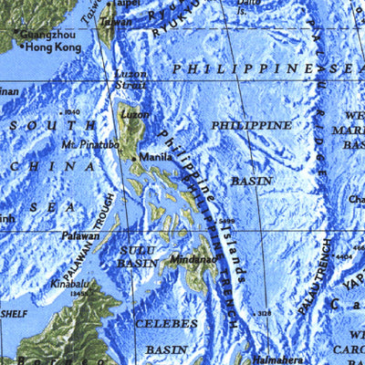 This beautiful physical world map, first published in February 1994, captures the land and oceans of the Earth as only National Geographic can. See the mountain ranges, river valleys, deserts, continental shelves, and ocean floor in amazing detail and beauty.