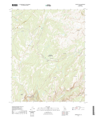 A digital topographic map of Yosemite Falls in California produced by the United States Geological Survey (USGS) in 2021. The map is part of the National Map series of 7.5 minute quadrangle maps. It shows contour lines, place names, water bodies and roads. Map services and data available from U.S...